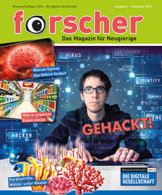 „forscher – Das Magazin für Neugierige“ richtet sich an 8- bis 12-Jährige und erscheint momentan einmal pro Jahr. Der Themenfokus richtet sich dabei stets nach dem jeweiligen Wissenschaftsjahr.