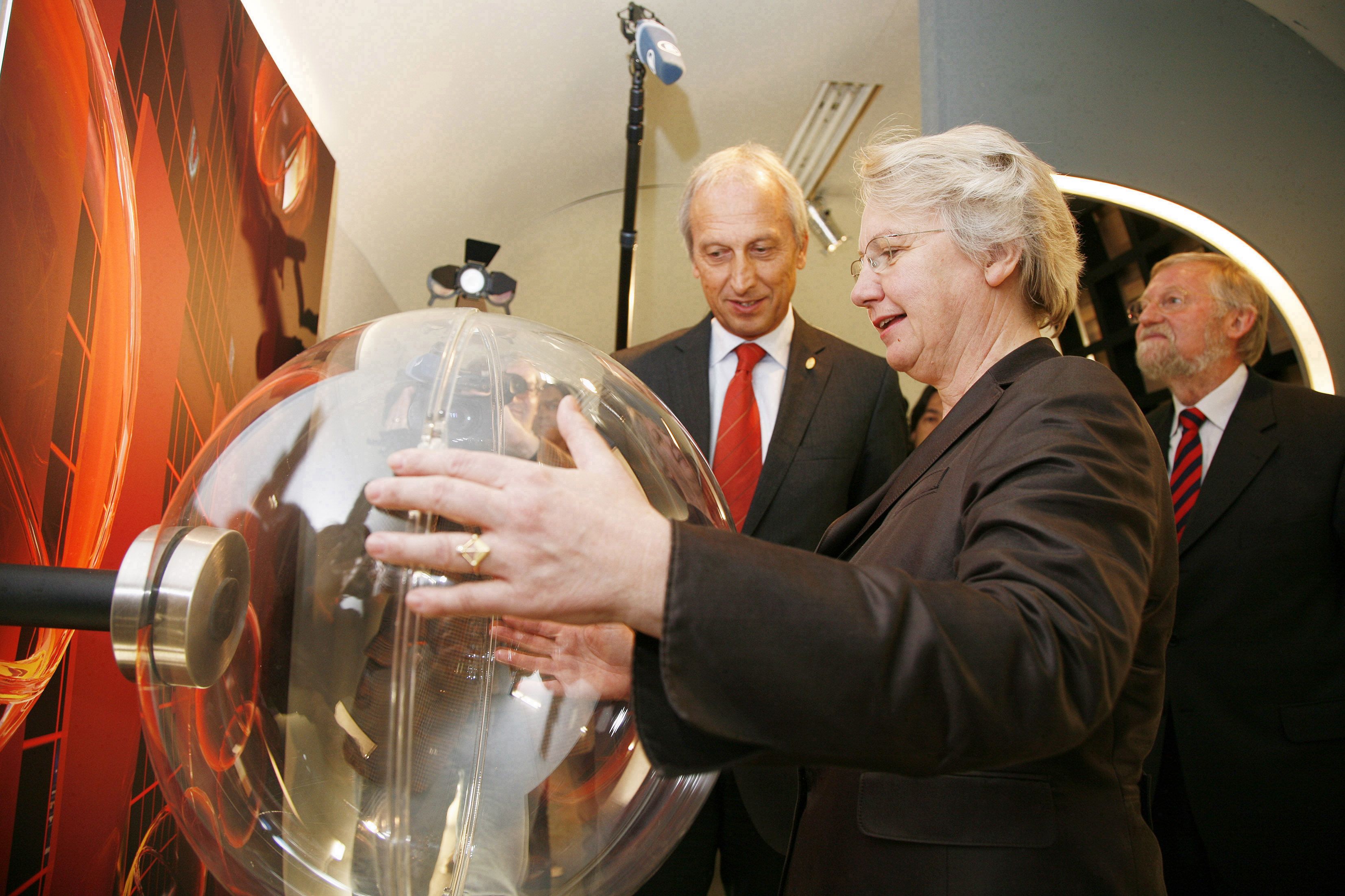Bundesforschungsministerin Annette Schavan im Ausstellungszug der "Expedition Zukunft". © Wissenschaftsjahr 2009 - Forschungsexpedition Deutschland