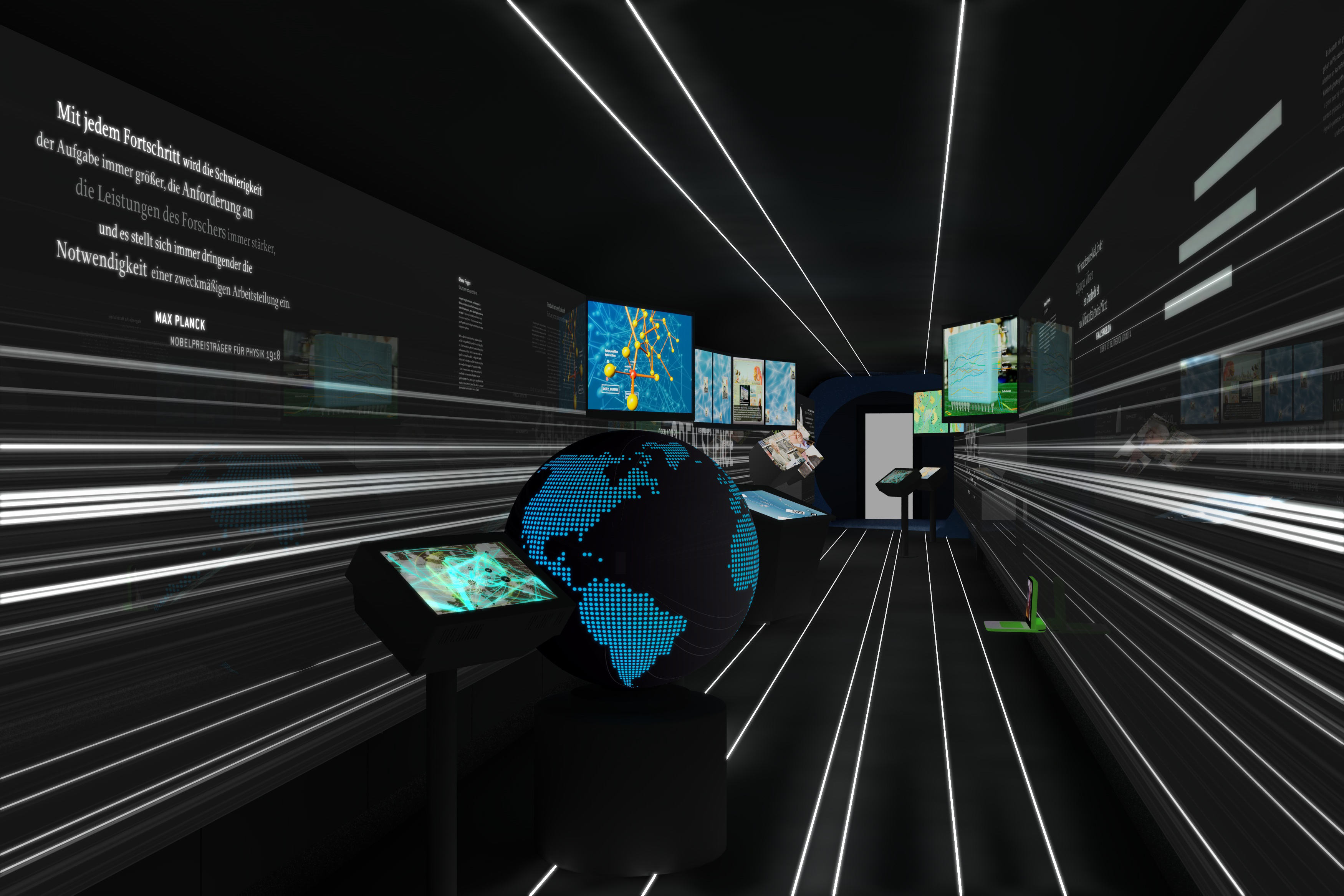 Innenansicht des Wagens 05 "vernetzt und global" © Wissenschaftsjahr - Forschungsexpedition Deutschland / www.archi-me-des.de