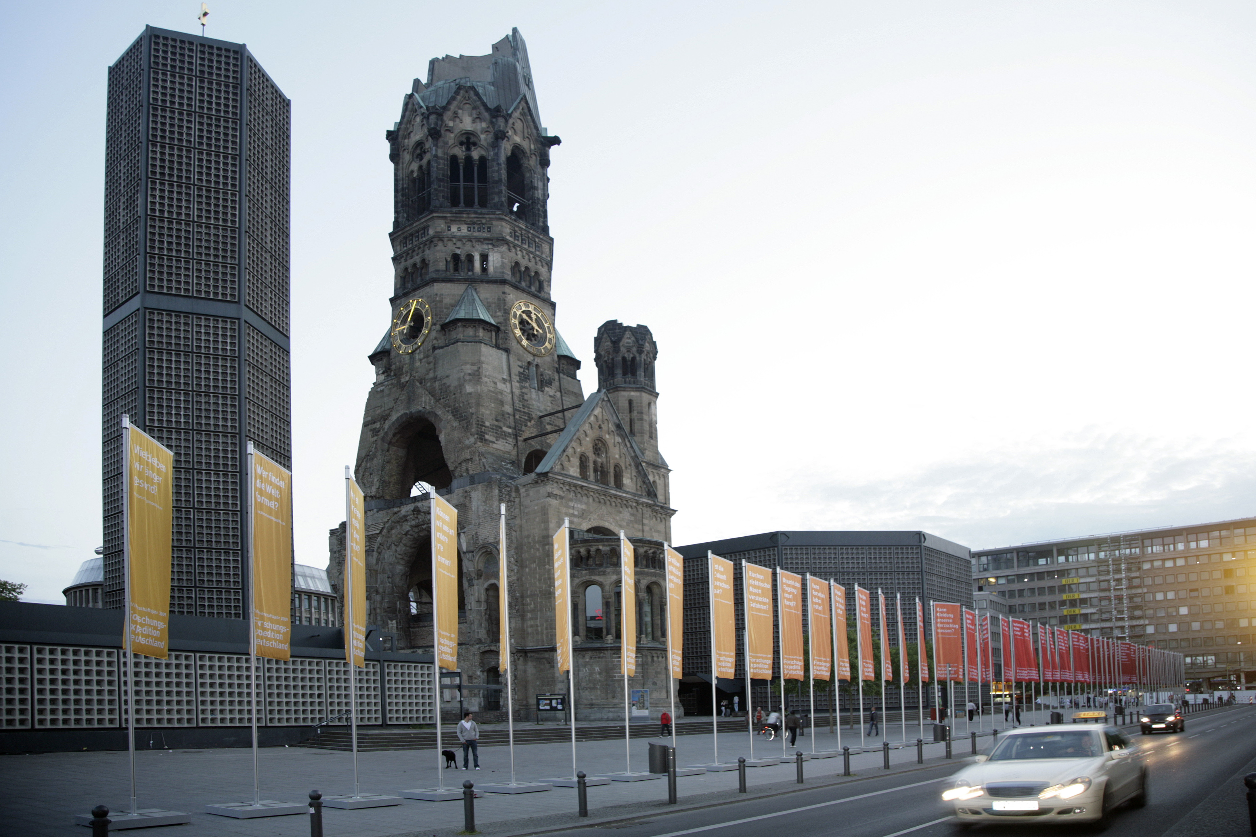 Fahneninstallation "120 Fragen an die Forschung" am Breitscheidplatz, 10789 Berlin © Wissenschaftsjahr 2009 - Forschungsexpedition Deutschland