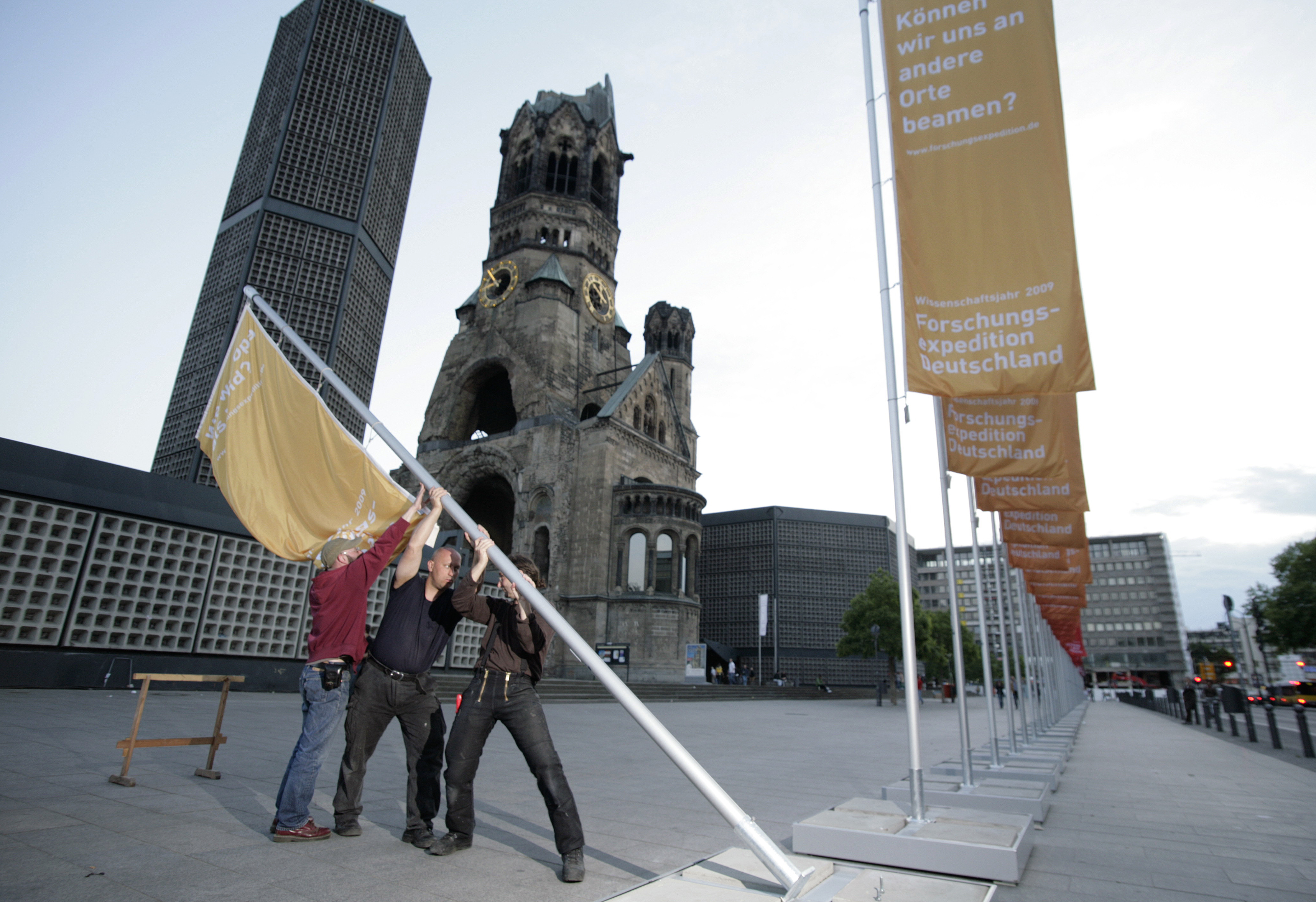 Fahneninstallation "120 Fragen an die Forschung" am Breitscheidplatz, 10789 Berlin © Wissenschaftsjahr 2009 - Forschungsexpedition Deutschland
