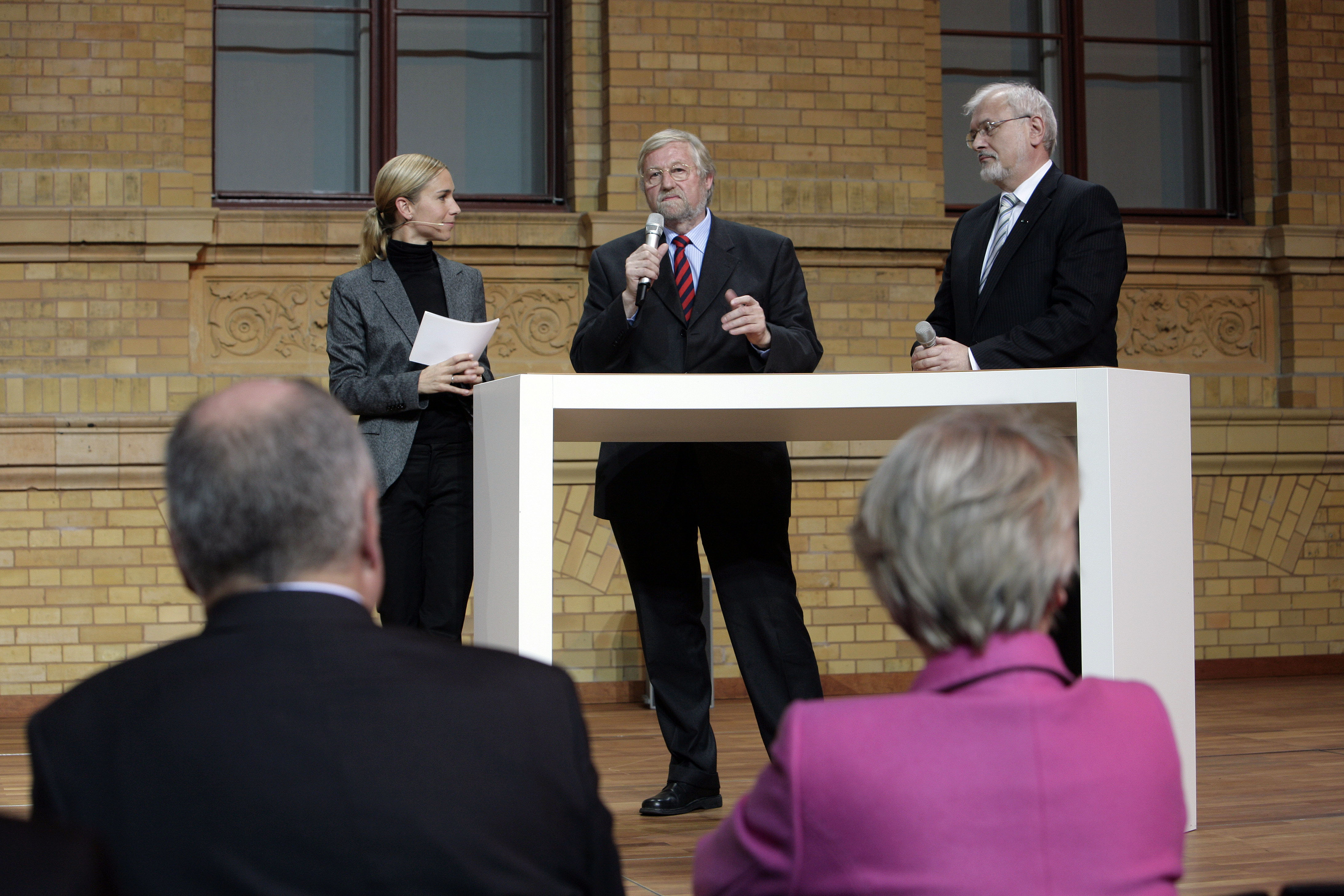 Frau Dr. Brandt-Bohne interviewt Herrn Prof. Dr. Wefer (Mitte) und Herrn Prof. Dr. Umbach © Amin Akthar
