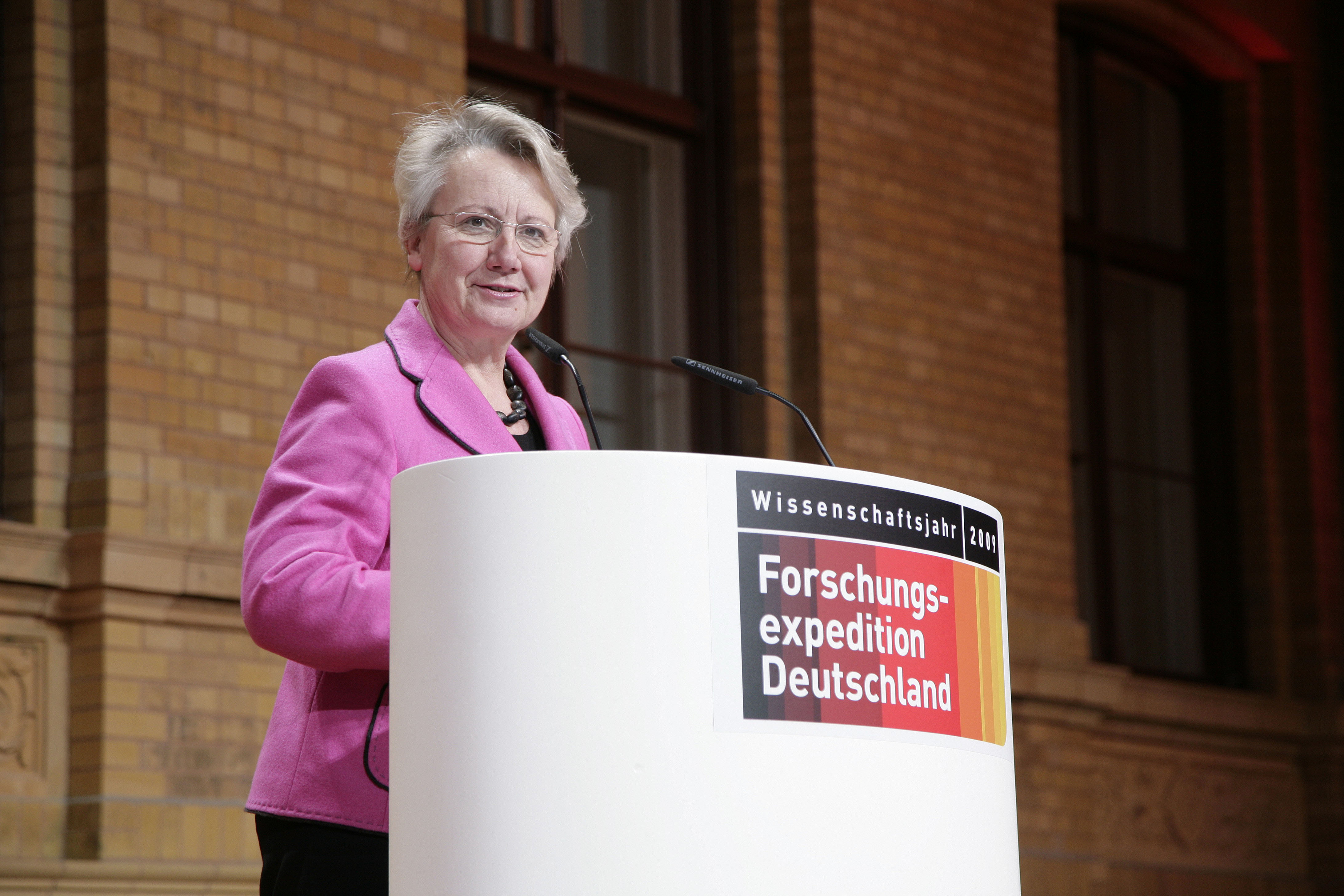 Professor Dr. Annette Schavan lässt die zehn Wissenschaftsjahre in der Hauptstadtrepräsentanz der Deutschen Telekom Revue passieren. © Amin Akthar