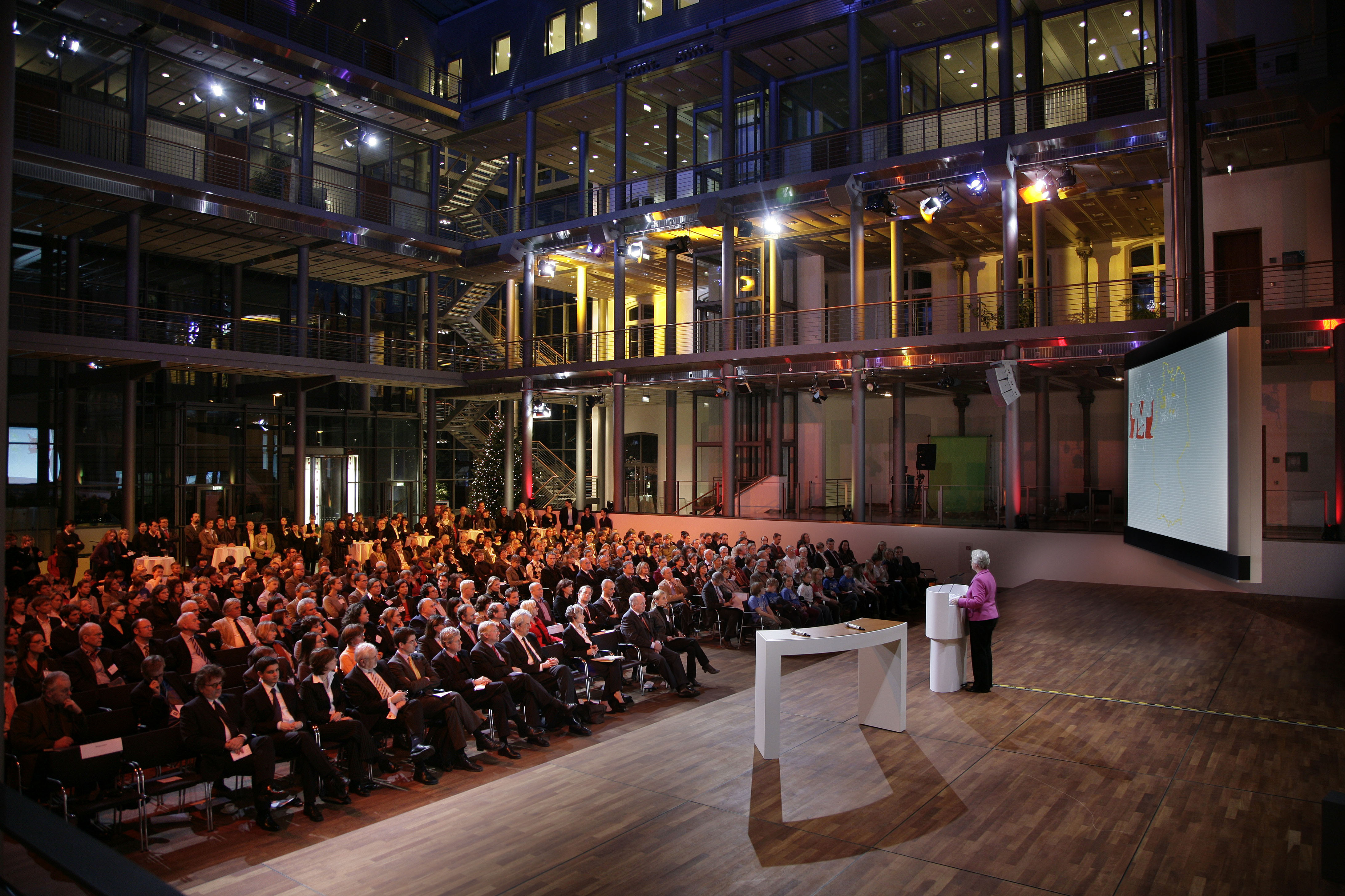 Professor Dr. Annette Schavan  lässt die zehn Wissenschaftsjahre in der Hauptstadtrepräsentanz der Deutschen Telekom Revue passieren. © Amin Akthar
