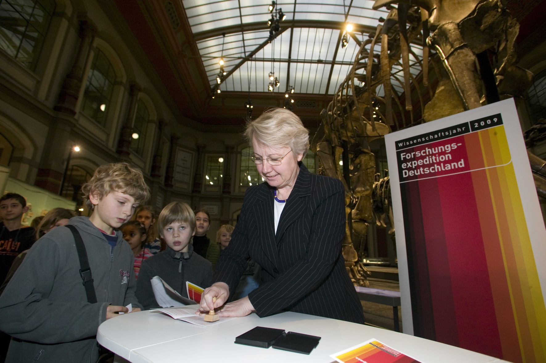 Stempel für eine erfolgreiche Forschungsexpedition: Bundesministerin Annette Schavan eröffnete im Berliner Museum für Naturkunde das Wissenschaftsjahr 2009. © Wissenschaftsjahr 2009 - Forschungsexpedition Deutschland