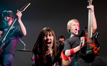 Dieser Dynamo-Effekt spielt auch in vielen anderen technischen Geräten eine wesentliche Rolle , etwa in dynamischen Mikrofonen und E-Gitarren. In einem meist für Live-Auftritte verwendeten dynamischen Mikrofon vibriert eine Membran im Rhythmus der Schallwellen. Eine kleine Spule ist an ihr befestigt und bewegt sich in einem Magnetfeld – so entsteht eine Spannung mit der Frequenz des Schalls. Auch E-Gitarren beruhen auf der elektromagnetischen Induktion: Die schwingende Stahlsaite verändert das Feld eines Magneten, wodurch in einer Spule ein Strom erzeugt wird. Rock on!