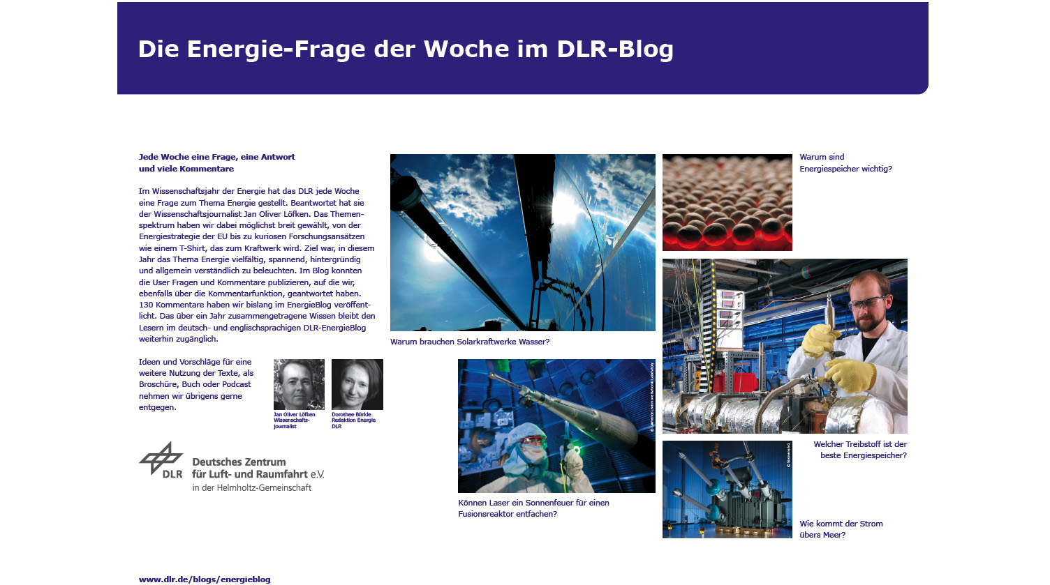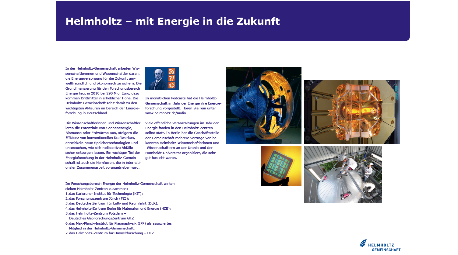 Das Magazin zeigt Themen und Herausforderungen der Energie-forschung, stellt Akteure vor und wirft einen Blick in die Zukunft der Energie.