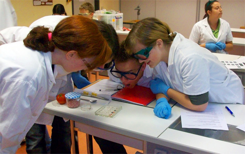 Aus vier Projekten konnten die Jugendlichen der 8. und 9. Jahrgangsstufen aus Berlin und Brandenburg wählen: „Vom Naturstoff zum Produkt: Wie entstehen Medikamente, Kosmetika und Lebensmittel?“ hat zum Beispiel eine Projektgruppe gefragt. Dabei haben die Schüler den gesamten Herstellungsprozess unter die Lupe genommen. Extraktion, Destillation – und aus einigen heimischen Beeren und Blüten entstanden am Ende aromatische Öle.