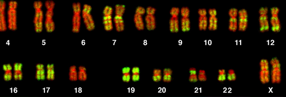 Quelle: Bolzer et al., (2005) Three-Dimensional Maps of All Chromosomes in Human Male Fibroblast Nuclei and Prometaphase Rosettes.