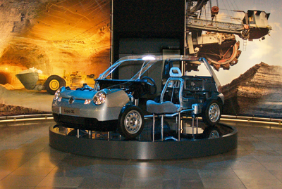Der Besucher nimmt im Museum zunächst die Kaue wahr, welche als inszenatorisches Moment die besondere bergmännische Atmosphäre vermittelt und somit den Einstieg in das Thema „Bergbau“ erleichtert. In der für das Thema Nachhaltigkeit besonders interessanten Ausstellungshalle „Bergbau heute – wozu?“ fällt der Blick als erstes auf ein teilskelettiertes Auto, an dem die Vielzahl der dafür notwendigen Rohstoffe deutlich gemacht werden.