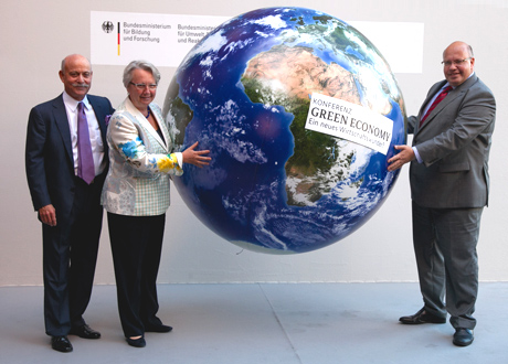 Bundesforschungsministerin Annette Schavan und Bundesumweltminister Peter Altmaier wollen mit einer gemeinsamen Initiative den Umbau der Wirtschaft zu einer nachhaltigen "Green Economy" beschleunigen. Denn "Green Economy" ist vor allem eins: Eine Chance für wirtschaftliche Entwicklung, Armutsbekämpfung und Umweltschutz weltweit. Besonders Deutschland könnte bei diesem wirtschaftlichen Umbau eine Vorreiterrolle einnehmen. Die OECD nennt unser Land das „Labor für grünes Wachstum“. Die Grundlage für das umfassende Wissen in Deutschland, welches notwendig ist, um grüne Innovationen voranzutreiben, bildet die Forschung für nachhaltige Entwicklung, das Kernthema im Wissenschaftsjahr Zukunftsprojekt Erde.