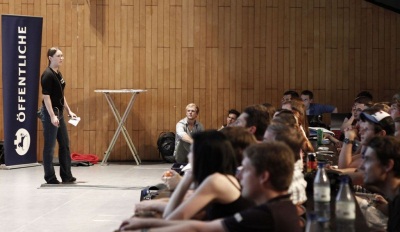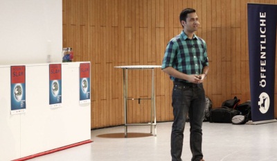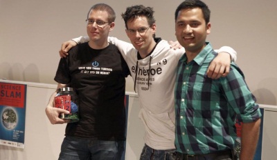Im vollbesetzten Audimax der Technischen Universität Braunschweig gab Informatiker Sebastian Schildt sein Slamdebüt. In seinem zehnminütigen Vortrag „Die Straßen sind gepflastert mit Super-Computern“ veranschaulichte er, warum wir Smartphones so intensiv wie möglich verwenden sollten. Denn durch ihre hohe Leistungskapazität bieten sie die besten Voraussetzungen, um Energie optimal zu nutzen und somit unsere Umweltbilanz zu verbessern. Vor heimischem Publikum gewann der wissenschaftliche Mitarbeiter am Institut für Betriebssysteme und Rechnerverbund der Technischen Universität Braunschweig damit den ersten von insgesamt vier Regionalwettbewerben des Science Slam im Wissenschaftsjahr 2012 – Zukunftsprojekt Erde. Gleichzeitig sicherte er sich einen Startplatz für das Finale am 27. November 2012 in Berlin.