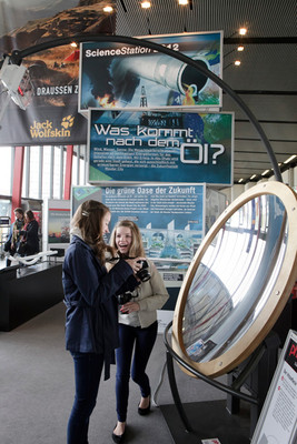 Wer nach dem Experimentieren noch Fragen hat, kann sich an die Ausstellungslotsen wenden, die vor Ort dem interessierten Publikum Rede und Antwort stehen. Oder er liest sich auf den Informationssäulen schlau, die weiteres Hintergrundwissen zu den einzelnen Experimentierstationen präsentieren. Nachzulesen ist dort unter anderem, wie Ingenieure die unendliche Energiequelle Sonne noch stärker nutzen wollen und wie in Abu Dhabi die Zukunftsstadt Masdar City entsteht, die sich ausschließlich mit erneuerbaren Energien versorgen soll. Und: wie in Hochhäusern großer Städte beim „urban farming“ Lebensmittel effizient und klimaneutral produziert werden.