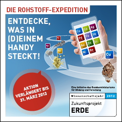„Die Rohstoff-Expedition“ im Rahmen des Wissenschaftsjahres 2012 – Zukunftsprojekt Erde ist weiterhin auf Erfolgskurs. Auf vielfachen Wunsch wird der Sammelzeitraum, der ursprünglich am 15. November 2012 enden sollte, bis zum 31. März 2013 verlängert.