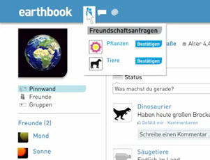 Die Erde ist Mitglied im sozialen Netzwerk „Earthbook“. Sie meldet sich an, klickt auf den „Anmelden“-Knopf – und los geht es!