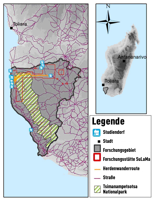 Das Forschungsprojekt SuLaMa (für: „Sustainable Land Management“) versucht, Alternativen zu bisherigen, wenig nachhaltigen Landnutzungsformen auf dem Mahafaly Plateau in Madagaskar zu entwickeln. Madagaskar gilt als eines der ärmsten Länder der Welt, das Mahafaly Plateau ist wirtschaftlich und klimatisch die am stärksten benachteiligte Region der Insel. Durch wiederkehrende Dürren, geringes Bildungsniveau und begrenzte Landnutzungsalternativen wird die ohnehin hohe Abhängigkeit von natürlichen Ressourcen für den Lebensunterhalt der Bevölkerung und die wirtschaftliche Entwicklung des Landes noch verstärkt. Ausgehend von einer Analyse der aktuellen Situation untersucht SuLaMa die Zusammenhänge und Wechselwirkungen zwischen der aktuellen Landnutzung und den Ökosystemfunktionen und -dienstleistungen mit einem interdisziplinären Ansatz, der Know-how in den Bereichen Ökologie und Sozioökonomie, Landschaftsplanung und Bewirtschaftung natürlicher Ressourcen miteinander verknüpft. Dafür arbeiten Forscherinnen und Forscher der Universitäten Hamburg, Greifswald, Kassel, Marburg und Cottbus gemeinsam mit verschiedenen Nichtregierungsorganisationen sowie Wissenschaftlerinnen und Wissenschaftlern und der Bevölkerung vor Ort an nachhaltigen Lösungen. Das Projekt wird vom Bundesministerium für Bildung und Forschung (BMBF) im Rahmen der Fördermaßnahme „Nachhaltiges Landmanagement“ gefördert.
