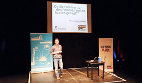 Mit seinem Beitrag "Ob Sie Pommes zu den Pommes wollen, hab ich gefragt!" wurde der Informatiker Johannes Schildgen zum Science-Slam-Champion gekürt. Auf unterhaltsame Weise präsentierte der Doktorand der TU Kaiserslautern, mit welchen Algorithmen Kaufempfehlungen beim Onlinehandel generiert werden und warum ältere Käufer mit ihren Bedürfnissen im Onlinegeschäft stärker berücksichtigt werden sollten.