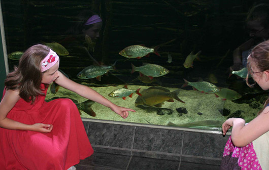 - Lebendtierbereich mit tropischen und einheimischen Tieren