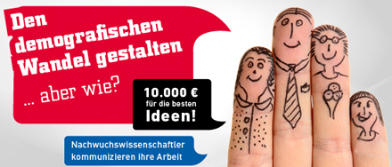 Mit dem bundesweiten Hochschulwettbewerb "Den demografischen Wandel gestalten - aber wie? Nachwuchswissenschaftler kommunizieren ihre Arbeit" hatte Wissenschaft im Dialog Nachwuchswissenschaftler aufgerufen, Kommunikationsideen zur Vermittlung von Forschung und Wissenschaft im Bereich der demografischen Entwicklung zu erarbeiten. Im Mittelpunkt standen die drei Handlungsfelder des Wissenschaftsjahres 2013: "Wir leben länger. Wir werden weniger. Wir werden vielfältiger". Der Wettbewerb wurde vom Bundesministerium für Bildung und Forschung im Rahmen des Wissenschaftsjahres 2013 gefördert.