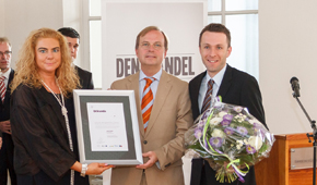 - Dipl. Psych. Benjamin Schültz nimmt die Auszeichnung für die atrain GmbH und Loewe entgegen. © Stefan Keller