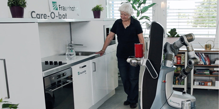 Die demografische Entwicklung ist die große Herausforderung der Zukunft. Immer mehr ältere Menschen werden ihren Alltag möglichst lange selbstbestimmt gestalten wollen - ja müssen. Für sie haben Stuttgarter Fraunhofer-Forscher eine zuverlässige wie unauffällige Hilfskraft entwickelt, die sie nicht nur bei beschwerlichen Tätigkeiten im Haushalt unterstützt, sondern zudem zu geistiger und körperlicher Aktivität anregt: Care-O-bot®3.