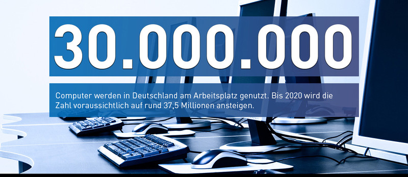 Computer werden in Deutschland am Arbeitsplatz genutzt. Bis 2020 wird die Zahl voraussichtlich auf rund 37,5 Millionen ansteigen.