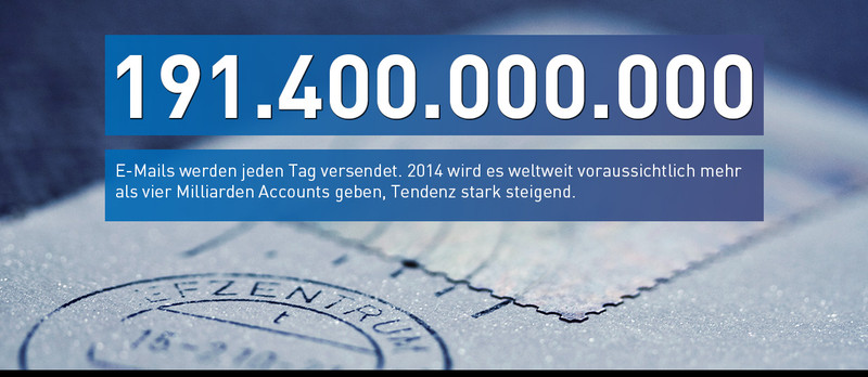 E-Mails werden jeden Tag versendet. 2014 wird es weltweit voraussichtlich mehr als vier Milliarden Accounts geben, Tendenz stark steigend.