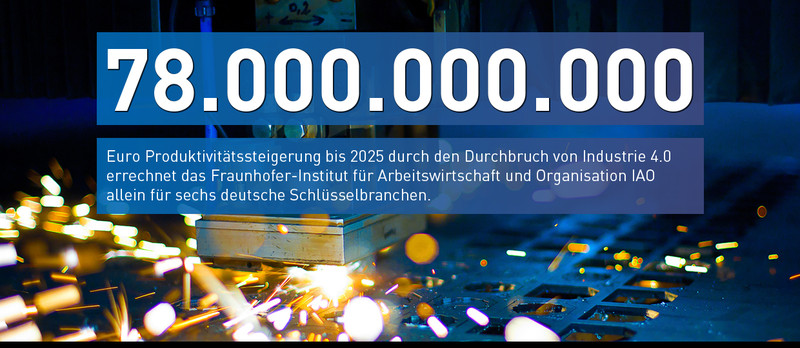 Euro Produktivitätssteigerung bis 2025 durch den Durchbruch von Industrie 4.0 errechnet das Fraunhofer-Institut für Arbeitswirtschaft und Organisation IAO allein für sechs deutsche Schlüsselbranchen.