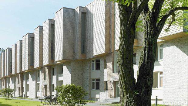 Die Wohnfläche verdoppelt und den Kohlenstoffdioxid-Ausstoß halbiert – das gelang bei der energetischen Sanierung von sechs Hamburger Wohnblocks aus den 1950er-Jahren. Die Häuser mit insgesamt 47 Wohnungen wurden um zwei Etagen mit Holzfassaden erhöht. Das erinnert an ein Baumhaus – alle Wohnungen haben große Dachterassen. Die so genannten Treehouses in der Bebelallee wurden im Innovationswettbewerb von „Deutschland – Land der Ideen“ als „ausgezeichneter Ort“ geehrt.