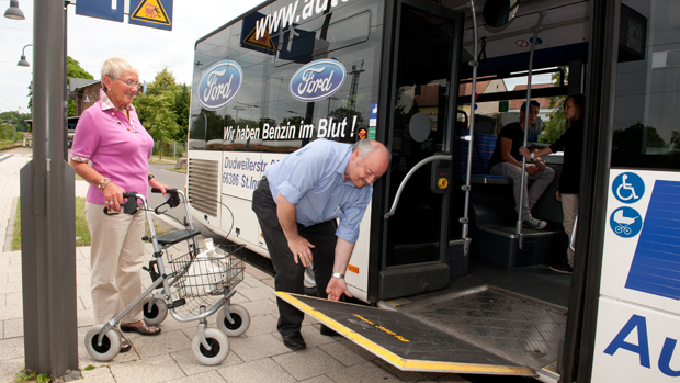 Die Kommunen wollen auch die Attraktivität und Nutzerfreundlichkeit öffentlicher Busse für ältere Fahrgäste erhöhen. Dazu wurde in Saarbrücken ein Projekt getestet: „Mobia – Mobil ins Alter“.