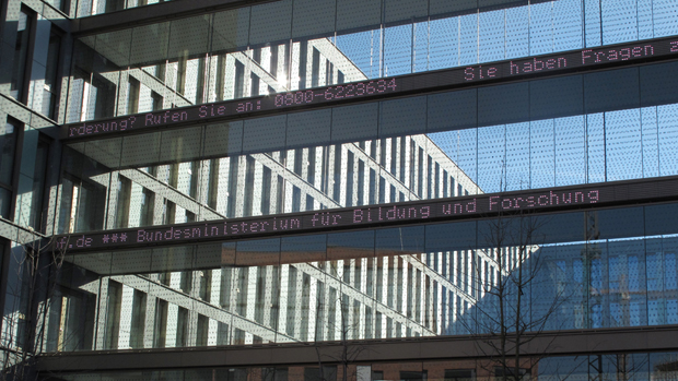 Fassaden aus Glas sind modern, doch mit ihren Spiegeleffekten oft eine tödliche Gefahr für Vögel. Das Bundesministerium für Bildung und Forschung (BMBF) hat jetzt seine Fensterscheiben am Berliner Sitz „vogelsicher“ ausgerüstet. Die Lösung wurde zusammen mit dem Bund für Umwelt und Naturschutz in Deutschland (BUND) und dem Architekturbüro Heinle, Wischer und Partner entwickelt: Die gefährlichen Glasflächen wurden mit anthrazitfarbenen Streifenmuster beklebt und für Vögel besser erkennbar. Die Lichtdurchlässigkeit der Scheiben blieb vollständig erhalten. Die Lösung basiert auf Empfehlungen der Schweizerischen Vogelwarte Sempach in Zusammenarbeit u. a. mit dem Bundesamt für Naturschutz.
