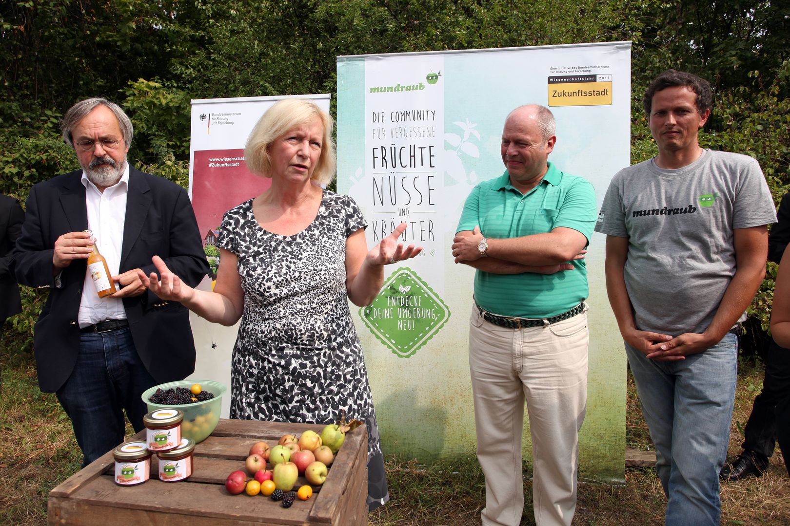 Mit der Aktion „Stadternte“ im Wissenschaftsjahr 2015 – Zukunftsstadt ruft das Bundesministerium für Bildung und Forschung (BMBF) bundesweit Bürgerinnen und Bürger zur Ernte von Obst und Gemüse auf Freiflächen auf. Unterstützt wird die Aktion durch die Initiative „Mundraub“, einer Online-Plattform, die vernachlässigte Obstgehölze auf Freiflächen und Alleen in digitalen Karten verzeichnet und gemeinschaftliche Erntecamps organisiert.