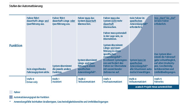 In der Studie werden Handlungsempfehlungen formuliert, um notwendige Rahmenbedingungen für den Verkehr der Zukunft zu schaffen. Dazu gehört unter anderem die Forderung einer interdisziplinären Zusammenarbeit in Bezug auf Automatisierung, Vernetzung und Infrastruktur und die Erarbeitung eines Entwicklungsplans. Auch Fragen der Datensicherheit und eines an die neue Situation angepassten Rechtsrahmens – national wie international – müssen nach Ansicht der Fachleute geklärt werden. Die Projektgruppe, der mehr als 40 Vertreter aus Wissenschaft, Wirtschaft und Verbänden angehören, will nun bis Ende 2016 eine Roadmap für den Weg zum vollautomatisierten Verkehr im Jahre 2030 erarbeiten.