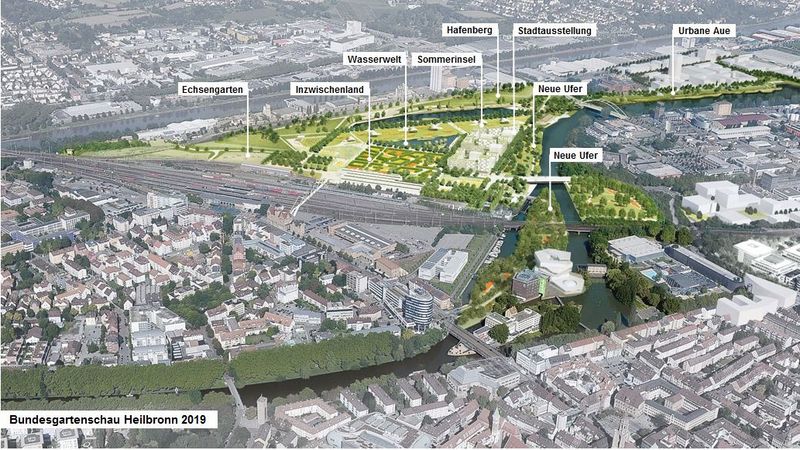 Vor diesem Hintergrund entstand die Idee, in diesem Gebiet eine Landschafts- und Gartenausstellung durchzuführen, die nach deren Ende zu einem neuen Stadtteil weiter entwickelt wird. Die ersten Häuser – damit alle in die Zukunft sehen können – sollen schon in der Ausstellungszeit im Jahr 2019 fertig und bewohnt sein. Erstmals in der Geschichte der Gartenausstellungen wird es eine Stadtausstellung mit drei fertigen Häuserblocks mitten in der Bundesgartenschau (BUGA) geben, in der zukunftsorientiertes Wohnen präsentiert wird. Eine Stadt mit intelligenten Häusern, wenig Energieverbrauch und Abfall, möglichst kaum Autos und guten Treffpunkten für die Nachbarschaft. Hier sollte man gut leben und auch arbeiten können – mitten in einer Parklandschaft. Mit Hilfe der BUGA soll dieses Areal zu einem neuen grünen Stadtquartier am Neckar entwickelt werden. Die BUGA ist Motor der Stadtentwicklung. Sie ist Symbol für Gestaltungswillen und trägt entscheidend zu einer deutlich spürbaren Aufbruchsstimmung in der Stadt bei.