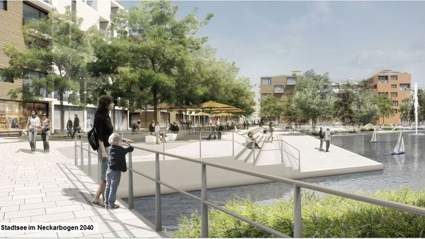 Der neue Stadtteil Neckarbogen in Heilbronn