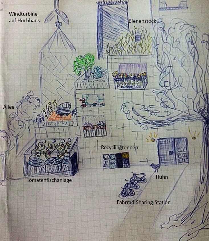 Wäre es heller, könnte ich beim Blick aus meinem Fenster tief hinab schauen, ich würde die Straßen sehen, auf denen heutzutage kein motorisierter Individualverkehr mehr zugelassen ist, sondern die fahrradfreundlich gebaut sind, mit großzügigem Platz für Fußgänger und Elektrofahrzeuge. Durch die durchsichtigen Solarpanels, die großflächig alle günstig ausgerichteten Häuserwände bedecken, würde ich Alleen sehen, die die grüne Lunge der Stadt trotz ihrer immensen Größe bewahren. Ich würde die hängenden Stadtgärten sehen, die Bienenvölker auf dem Balkon gegenüber und die kleine Windturbine auf der Spitze des Nachbarturms. Jaja, Hauptstadt der Wolkenkratzer ist Frankfurt wohl geblieben, auch wenn ihm viel von seinem Charakter zeitweise abhanden kam, als der Grüngürtel durch den Wohnungsdruck letztendlich vollkommen zugebaut wurde, mit Einfamilienhäusern und Penthousewohnungen, die niemand bezahlen konnte und im Grunde auch niemand wollte...