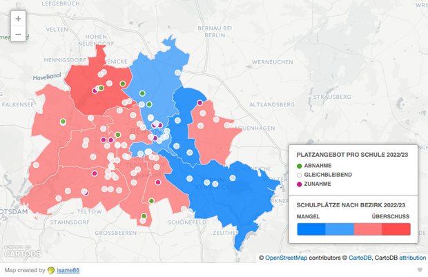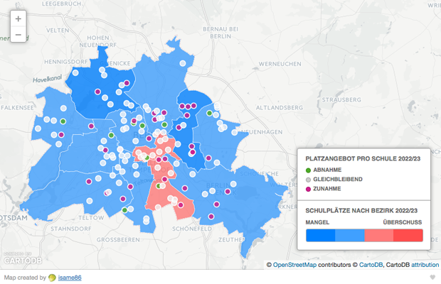 In sieben von zwölf Berliner Bezirken wird es 2022 zu wenige Grundschulplätze geben. Besonders gravierend wird der Platzmangel in Lichtenberg zu spüren sein, dort fehlen dann Plätze für 2016 Schüler. Gerade in den Boom-Bezirken gelingt es nicht, das Wachstum in den jungen Bevölkerungsschichten mit neuen Schulen und Erweiterungsbauten aufzufangen. In Pankow genauso wie in Lichtenberg wird jeweils nur eine Grundschule mehr Plätze als heute anbieten können.