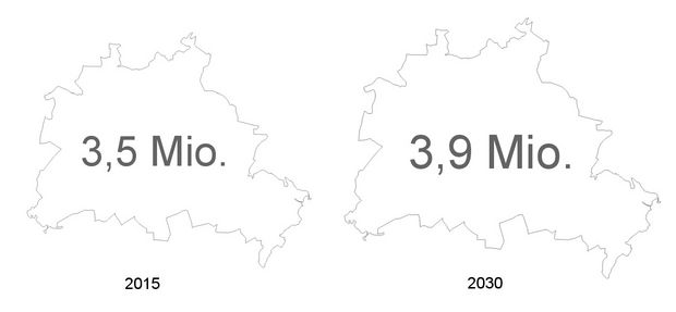 Etwa dreieinhalb Millionen Einwohner leben heute in Berlin – und es werden immer mehr. Die Bevölkerungsprognose 2011-2030 des Berliner Senats sagt voraus: Eine ganze Stadt so groß wie Chemnitz soll hinzukommen. Die neuesten Schätzungen gehen sogar von einem Zuwachs von 400.000 in den nächsten 15 Jahren aus – das wäre mehr als die Einwohnerzahl von Bochum.