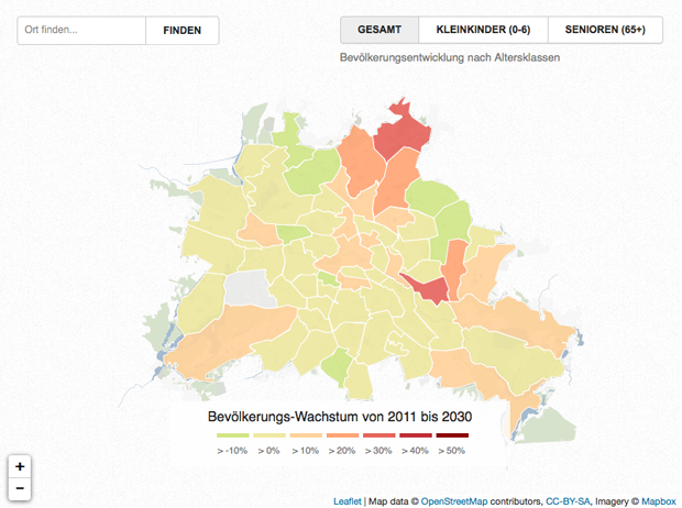 Inzwischen hat Stadtentwicklungssenator Andreas Geisel (SPD) die Prognosen sogar nach oben korrigiert. Seit drei Jahren kommen laut dem Landesamt für Statistik Berlin-Brandenburg etwa 45.000 Menschen jährlich hinzu. Geisel geht inzwischen von 3,9 Millionen Berlinern im Jahr 2030 aus. Aber nicht alle Ortsteile sind von dem Wachstum betroffen. Laut Demografen wird es zwei Berlins geben: eines das größer wird und in dem viele Kinder zu Welt kommen. Und ein anderes, das schrumpft und altert.