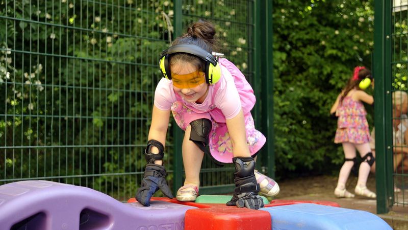 Die Kinder könnten den Weg zum Kindergarten, zur Schule oder zum Spielplatz auf Hindernisse untersuchen. Dazu kann es sinnvoll sein, einen Bollerwagen zu benutzen oder einen Rollstuhl auszuleihen: Welche Stellen sind für Menschen in Rollstühlen schwierig zu überwinden? Wo entdecken die Kinder vielleicht Hilfen für Rollstühle wie Rampen an Treppen? Und wie fühlt es sich an, eine steile Rampe zu benutzen?