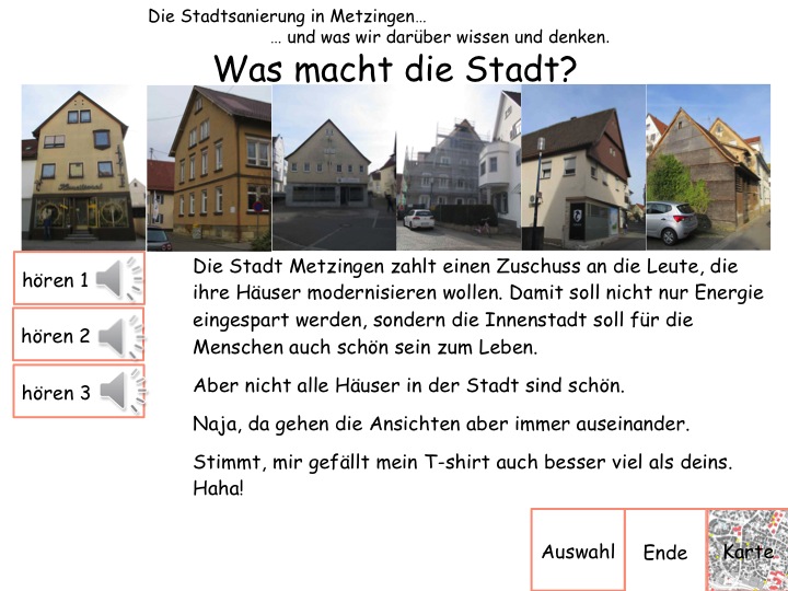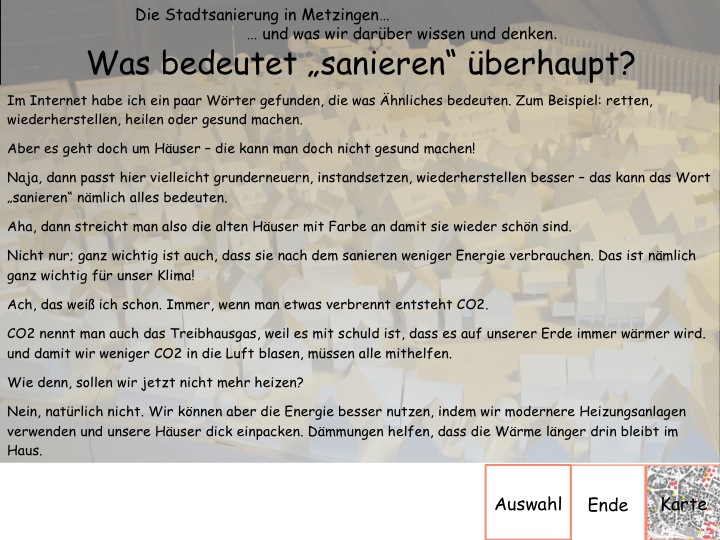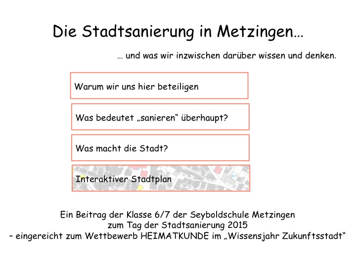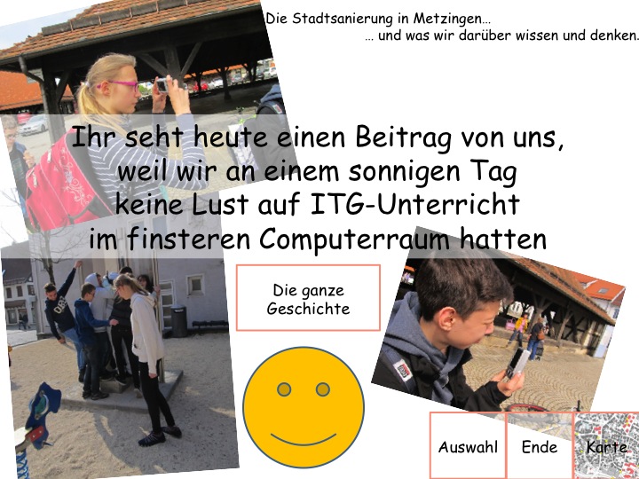 „Die kreative Präsentation der Idee mit interaktivem Stadtplan hat mich sehr begeistert: Sie ist absolut nutzerfreundlich und gut durchdacht. Die Schülergruppe schließt mit viel Charme an das Thema Stadtsanierung an. Sie bezieht die Geschichte der Orte sowie vielfältige Aspekte der Stadtstruktur ein - schließlich ist ein Ziel, das Stadtbild neu zu begreifen." (Thomas Honeck, Leibniz-Institut für Raumbezogene Sozialforschung (IRS), Jurymitglied)
