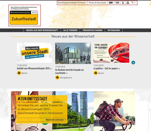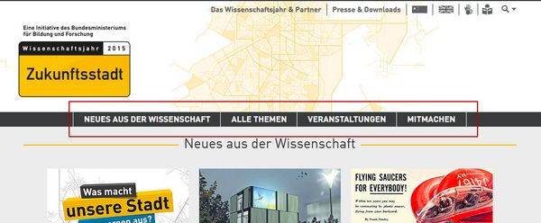 Ganz oben links sehen Sie das Bild-Zeichen „Zukunftsstadt“. Wenn Sie auf das Bild-Zeichen klicken, kommen Sie zurück zur Start-Seite.