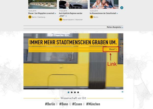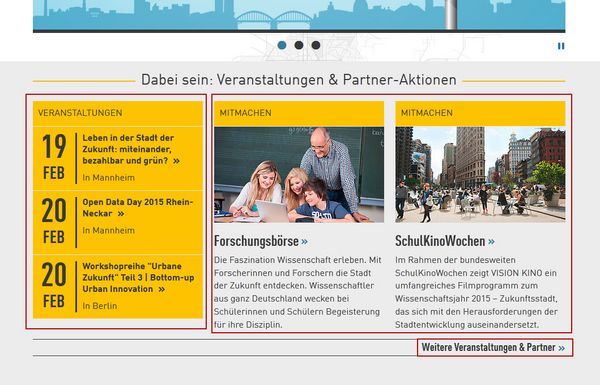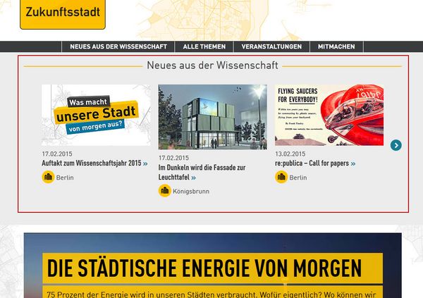 Auf der Start-Seite finden Sie wichtige Informationen und Neuigkeiten zum Thema Zukunfts-Stadt. Zum Beispiel: