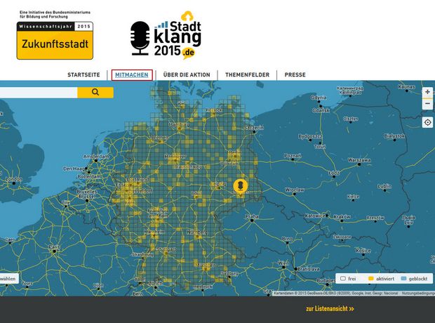 Mitmachen heißt, dass man selbst einen Klang aufnimmt und auf die Klang-Karte hoch lädt.