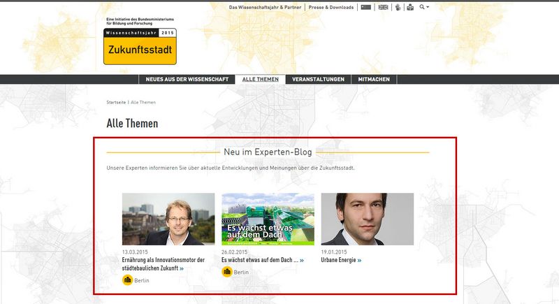 Hier geht alles genau so, wie auf der Start-Seite vom Wissenschafts-Jahr.