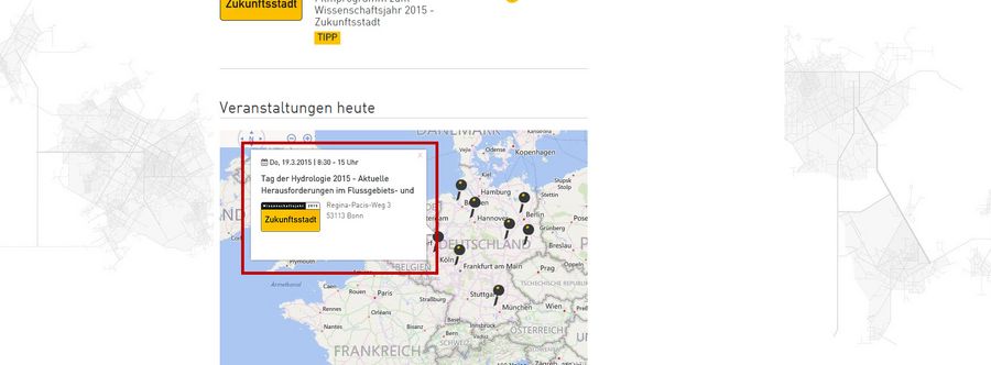 Wenn Sie auf eine Veranstaltung in der Karte klicken, dann kommen Sie auch zu den Informationen über die Veranstaltung.