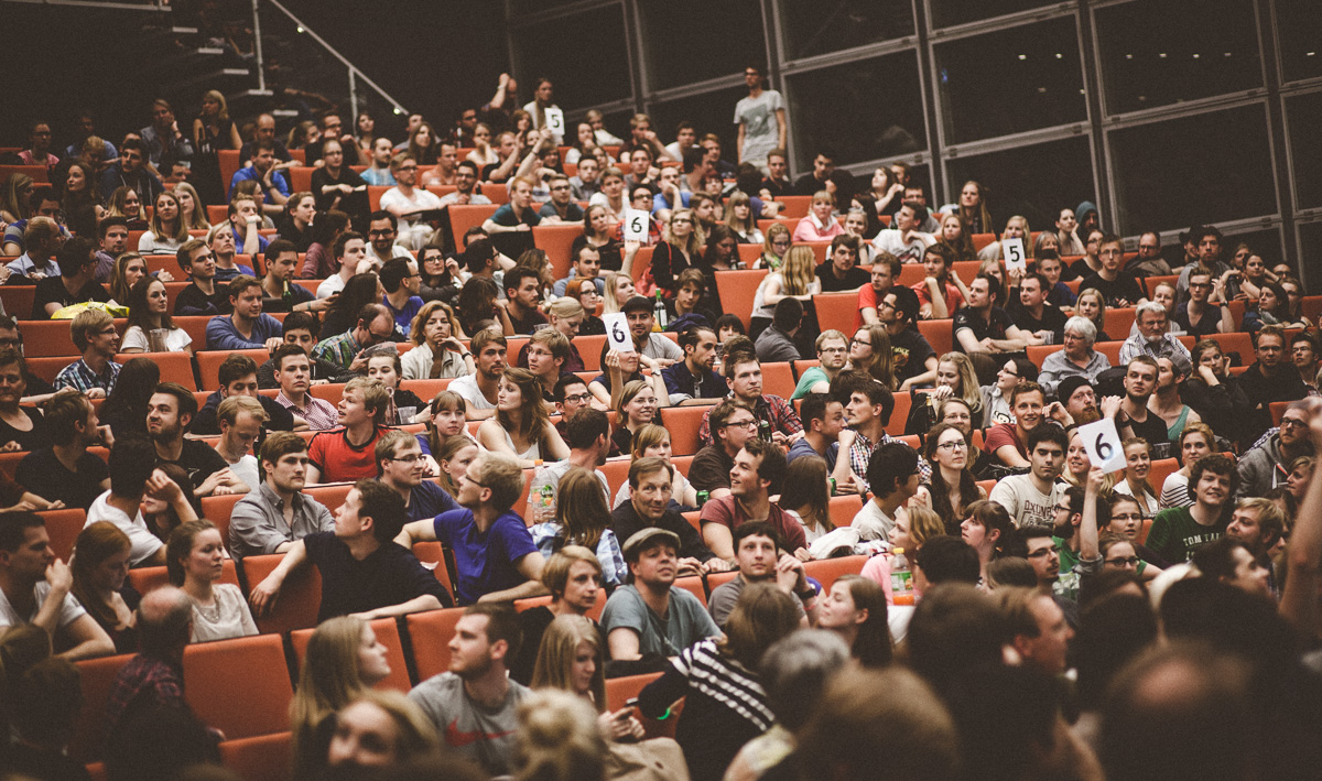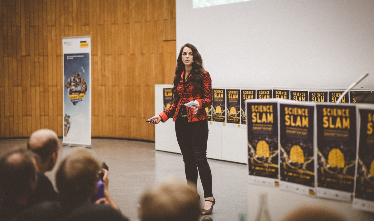 Bereits lange bevor der Science Slam offiziell begann, strömten erwartungsvolle Zuschauer in den Hörsaal. Dann war es endlich soweit: insgesamt sechs SlammerInnen präsentierten ihre Forschungsthemen auf der Bühne und stellten sich der kritischen Bewertung des Publikums. Auch für gute Vorbereitung der NachwuchswissenschaftlerInnen hatte das Haus der Wissenschaft im Vorfeld gesorgt: Ein ganzes Wochenende bestand die Möglichkeit, bei einem kostenlosen Bühnentraining unter der professionellen Anleitung von einem Trainer und Schauspieler am eigenen Auftritt zu arbeiten. Sven Hönig coachte und gab Tipps und Kniffe für einen gelungenen Auftritt an die Teilnehmer weiter.