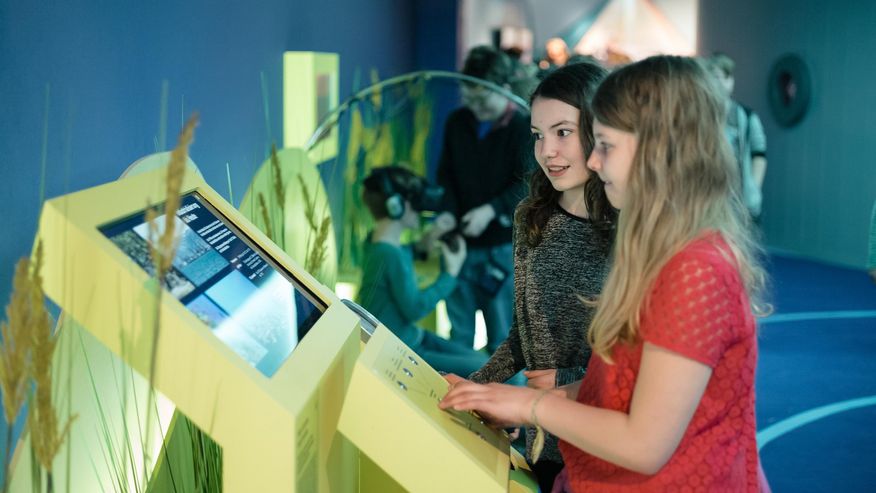 Die Ausstellungsstücke laden zum Entdecken und Ausprobieren ein: Spielerisch können die Besucherinnen und Besucher herausfinden, wie nachhaltiger Fischfang funktioniert. Mit einer Virtual-Reality-Brille tauchen sie durch ein tropisches Korallenriff und im Tiefseekino entdecken sie, welche Kreaturen in vollkommener Finsternis tausende Meter tief am Meeresgrund leben.