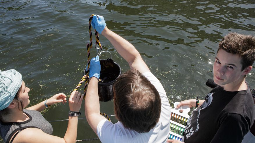 Schwungvoll wirft Jonatan Mix (17) einen Eimer an einer Kordel in die Spree. Der Eimer füllt sich mit Wasser und der Jugendliche zieht ihn zurück ans Deck der MS Wissenschaft. Auf dem Schiff führen Meeresforscher aus Bremen einen Schüler-Workshop zu dem internationalen Projekt "My Ocean Sampling Day" (MyOSD) durch. Darin sind Bürgerinnen und Bürger aufgerufen, am 21. Juni Wasserproben an deutschen Küsten und ihren Zuflüssen zu nehmen. Sie können damit einen Beitrag leisten zum größten Datensatz über Kleinstlebewesen im Meer, der je an einem Tag produziert wurde.