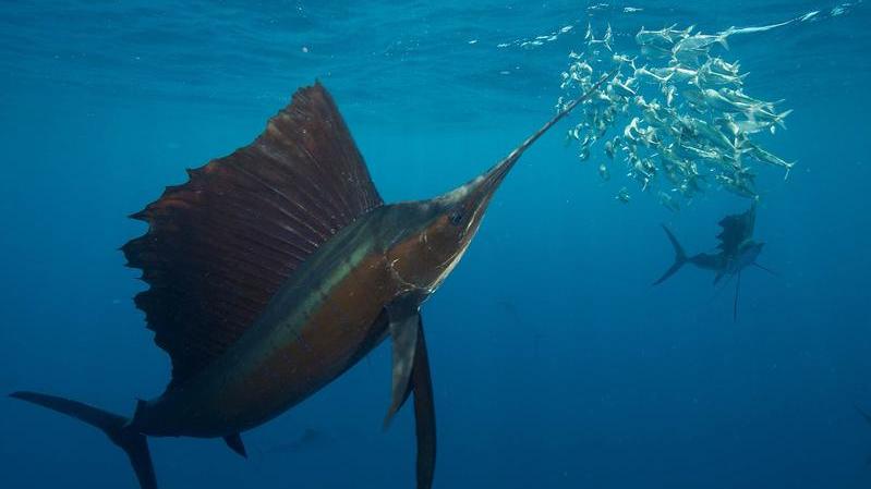 Am Ende entscheidet dann doch die Geschwindigkeit bei der Jagd. Dann dreschen angreifende Segelfische in rekordverdächtiger Geschwindigkeit mit der spitzen Schnauze auf die Opfer ein. Mal von links, mal von rechts.
